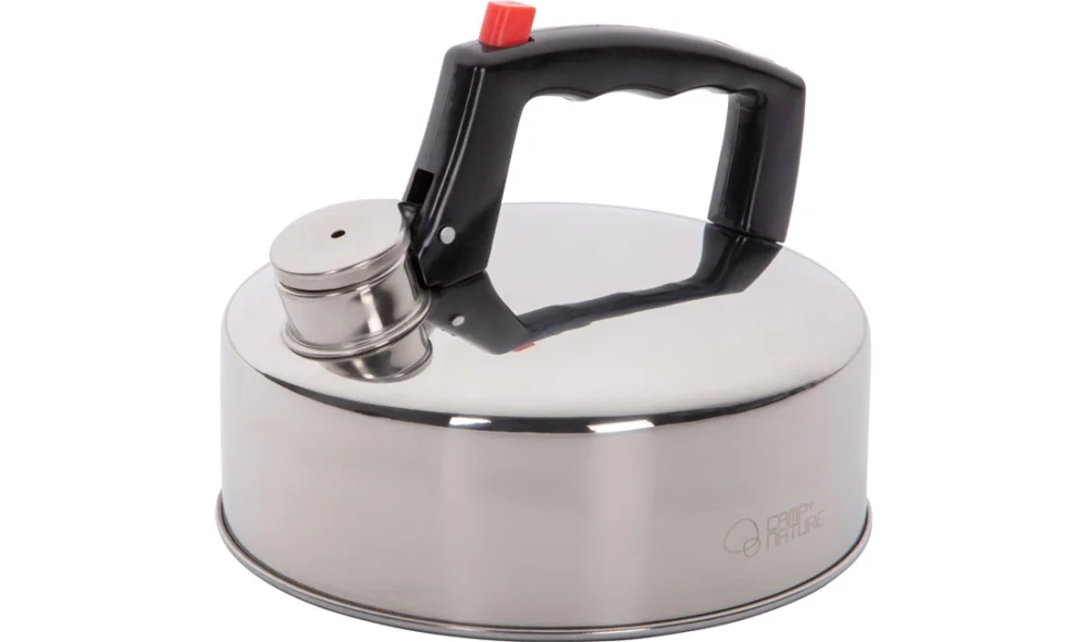 Vattenkokare i rostfritt stål med visselpipa och värmeisolerande ABS-handtag.